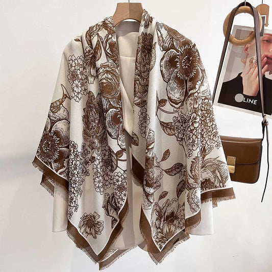 2025 Spring Summer New Fashion Designer Customized Printed Square Scarf for Women Flower Pattern Beach Sunscreen Shawl
