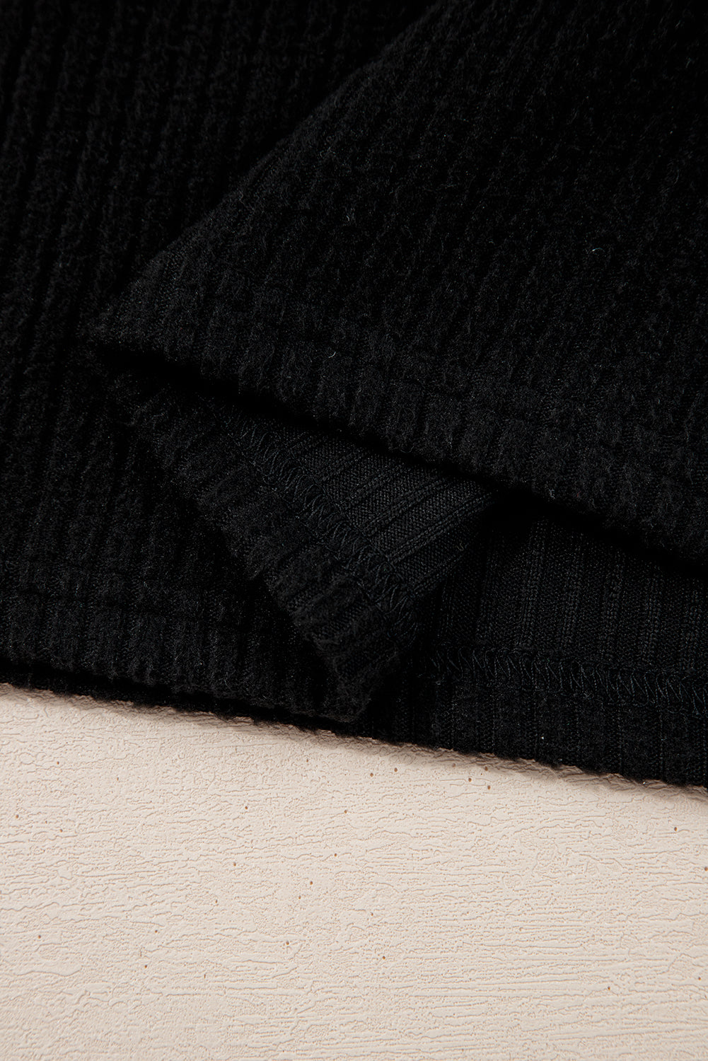 Black Ribbed Zip Stand Neck Drop Shoulder Pullover Bodycon Skirt 2pcs Set