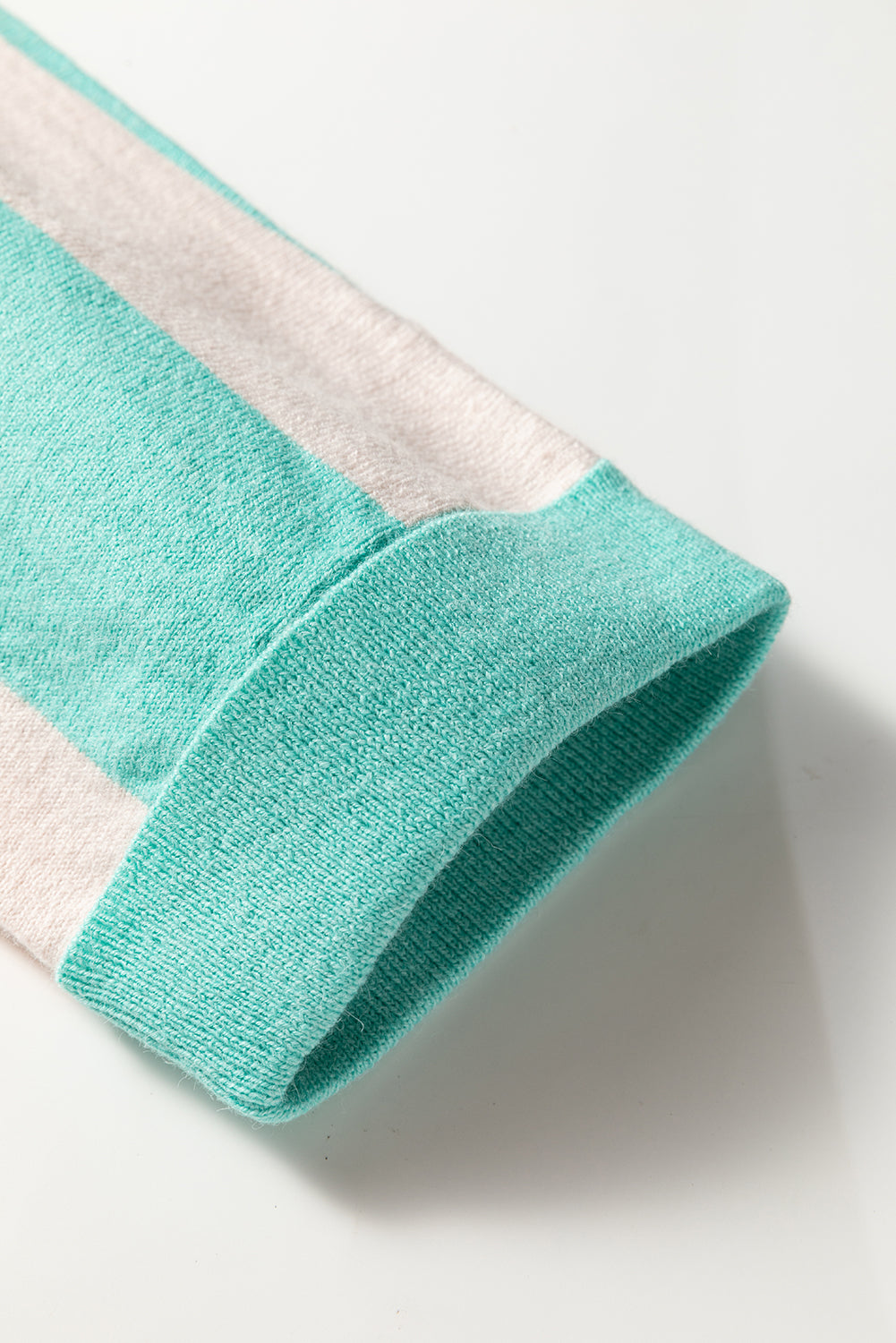 Iceland Blue Colorblock Knit Open Front Short Casual Cardigan