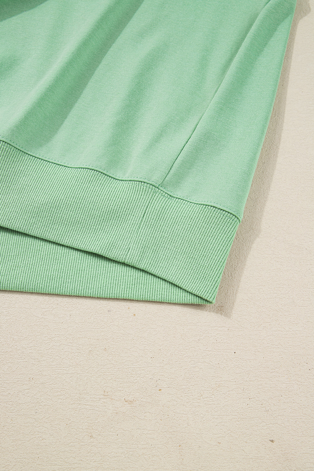Moonlight Jade Color Block Striped Patchwork Collar V Neck Plus Size Sweatshirt