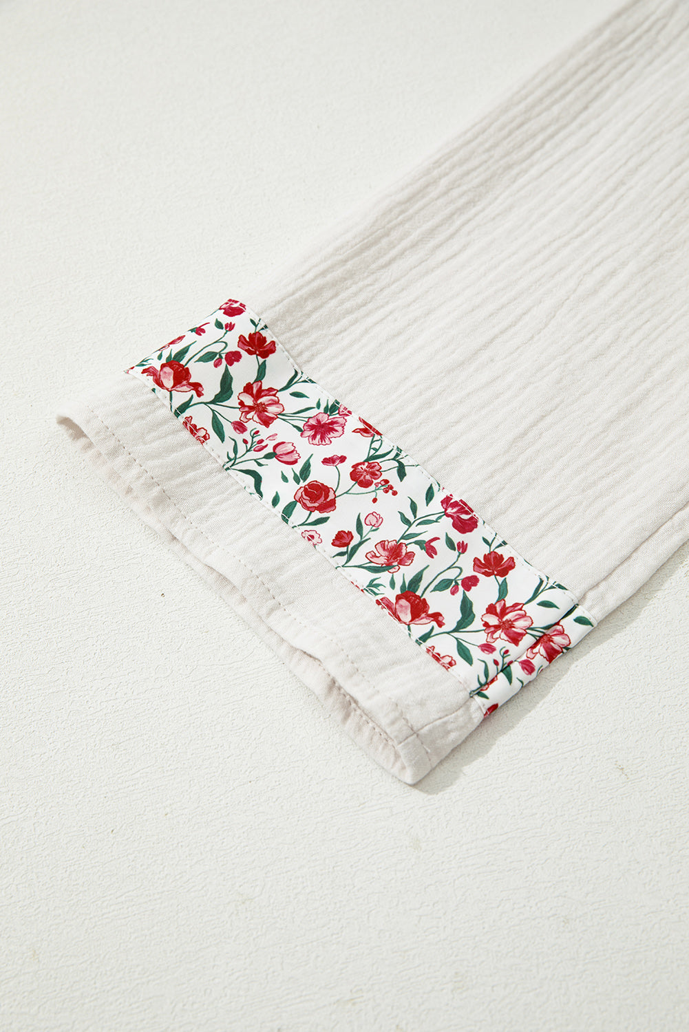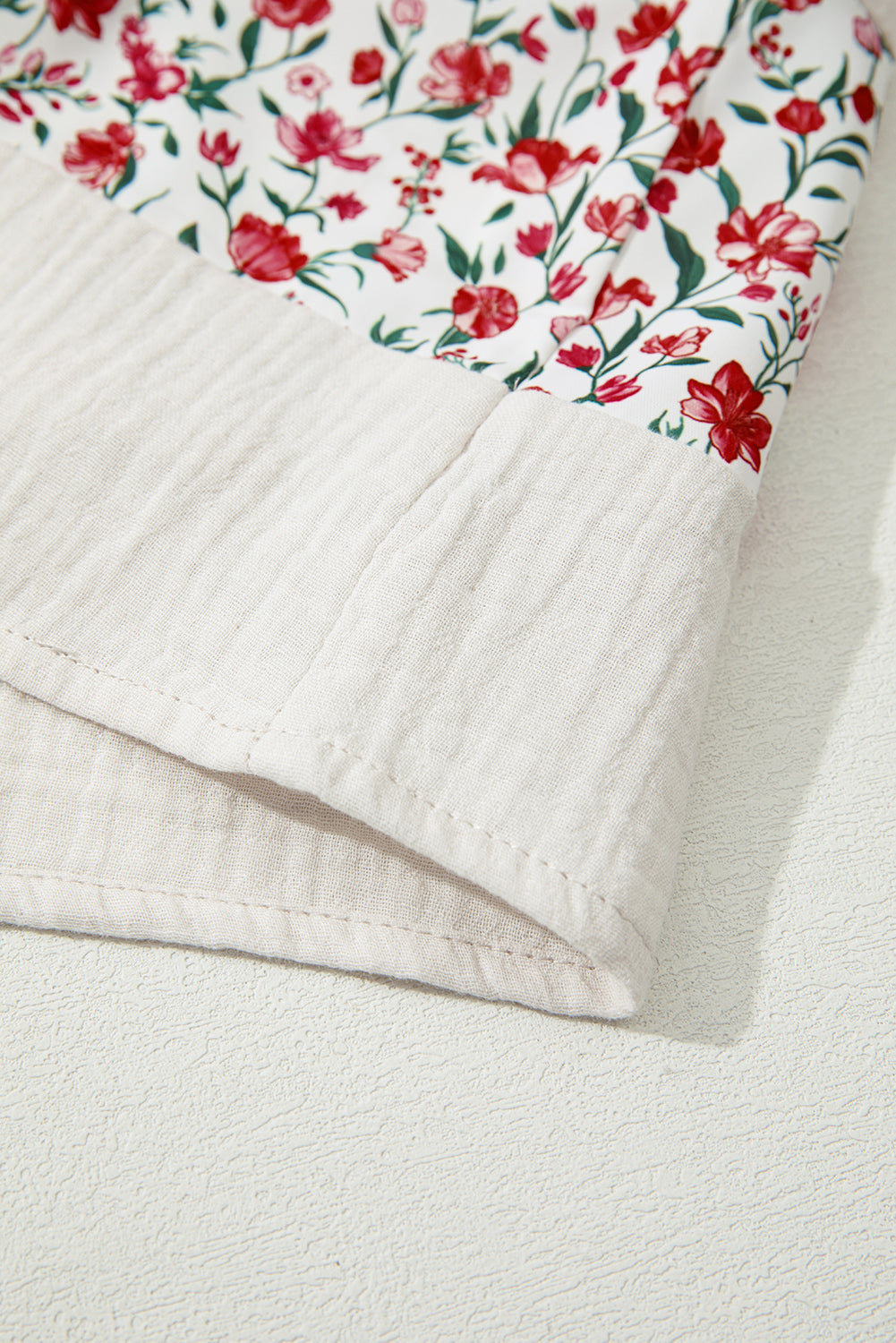 - Elegant floral print blends perfectly with breathable gauze patchwork.