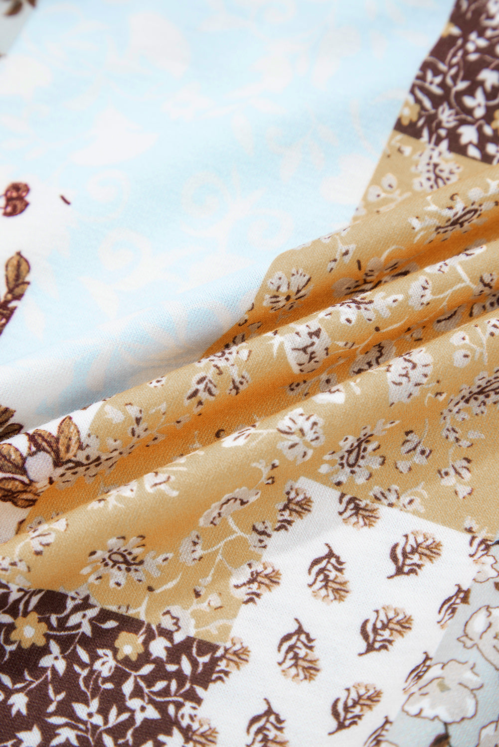 - Floral print and contrast patchwork create a chic, eye-catching combo.