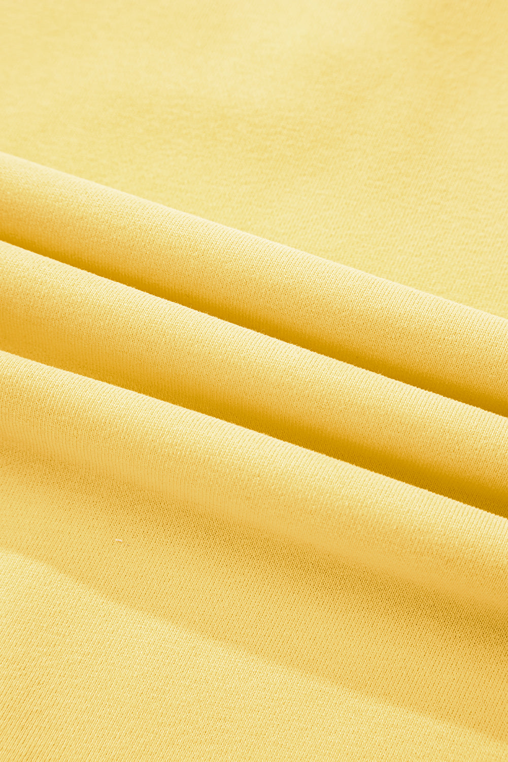 Yellow Cream Embroidered Flower Patchwork Snap Buttons Pullover Sweatshirt